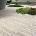 Dentro del urbanismo táctico realizado en la manzana donde se localizan las torres Atrio y el Centro de Comercio Internacional (CCI) se decidió la implementación de materas en concreto arquitectónico con caucho reciclado.