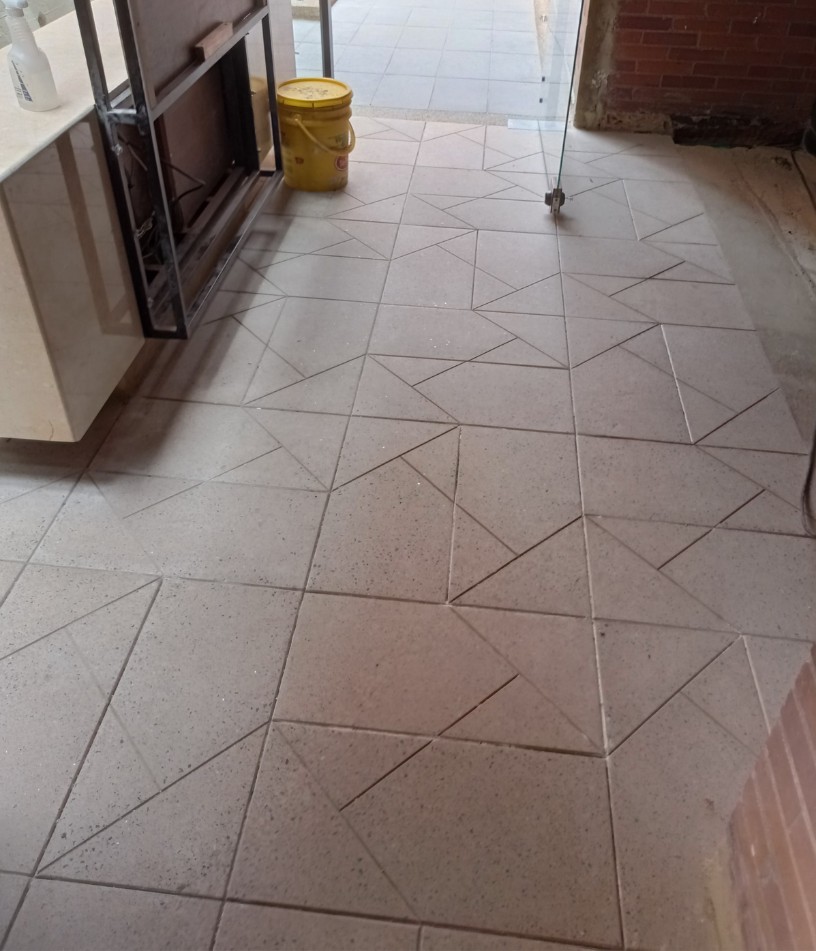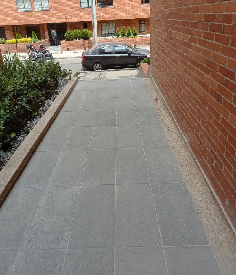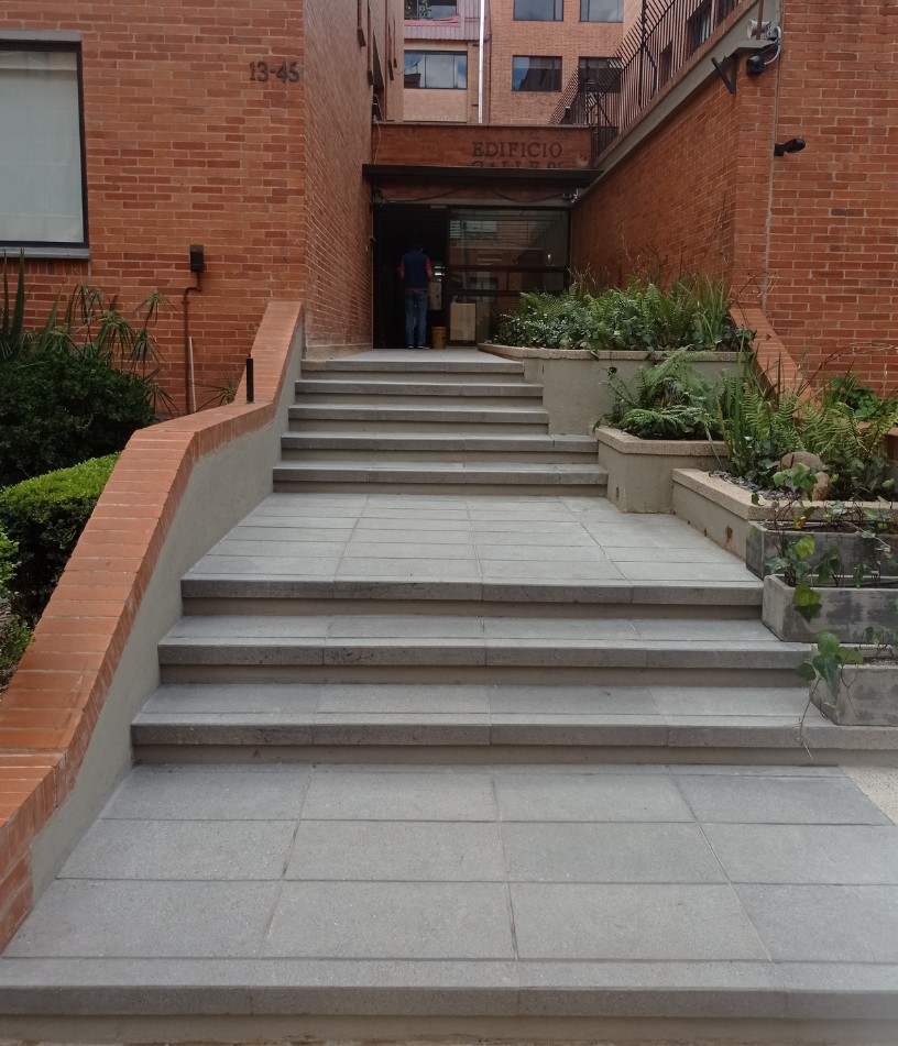 Se fabricaron dos formatos de baldosa: menger 1 y menger 2 que al usarse juntos generan un efecto elegante para la entrada y zonas comunes del edificio 93. Su color gris y el uso del concreto arquitectónico permitió hacer la transición entre los materiales del ingreso de un área con alto trafico de personas.