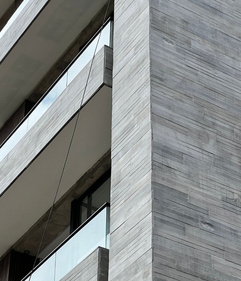 Revestimientos en concreto arquitectonico para la fachada del edificio Sangregado en el barrio El Chico de Bogotá