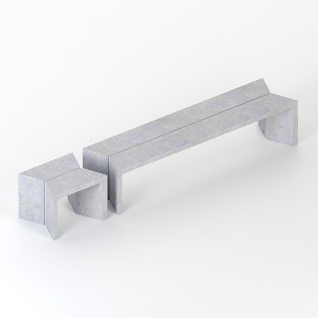El banco de la colección TIMBU está elaborado en concreto arquitectónico de alta resistencia, y comparte el lenguaje formal de su banca complementaria. Su diseño compacto y angulado lo convierte en una solución versátil y funcional para espacios públicos o privados que requieren piezas robustas con identidad propia.
